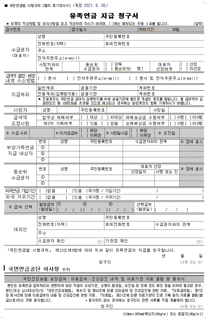 - 유족연금지급청구서