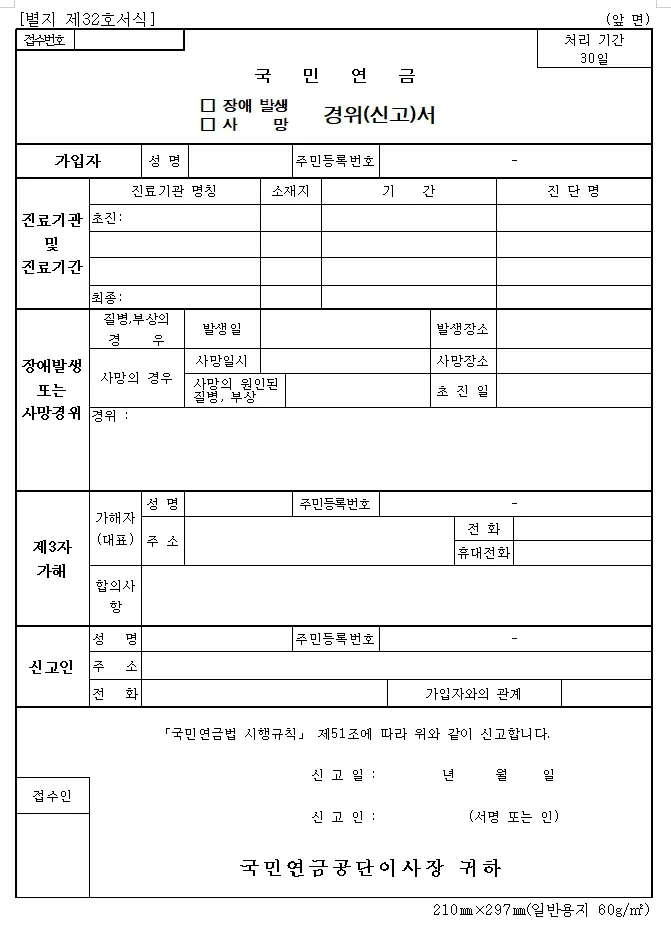 - 장애발생, 사망 경위 신고서