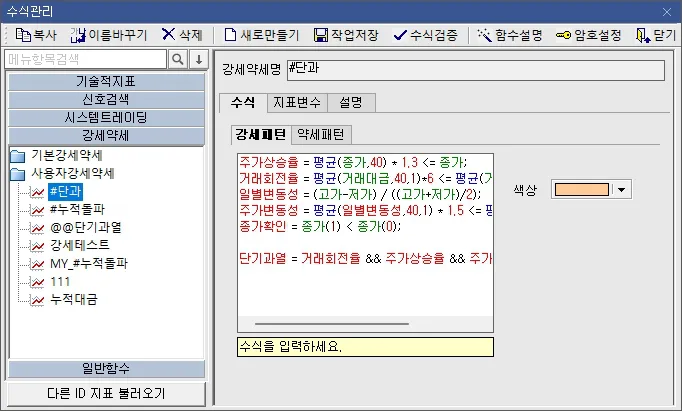 수식관리자 - 신호검색, 강세약세 보조지표 만드는 방법
