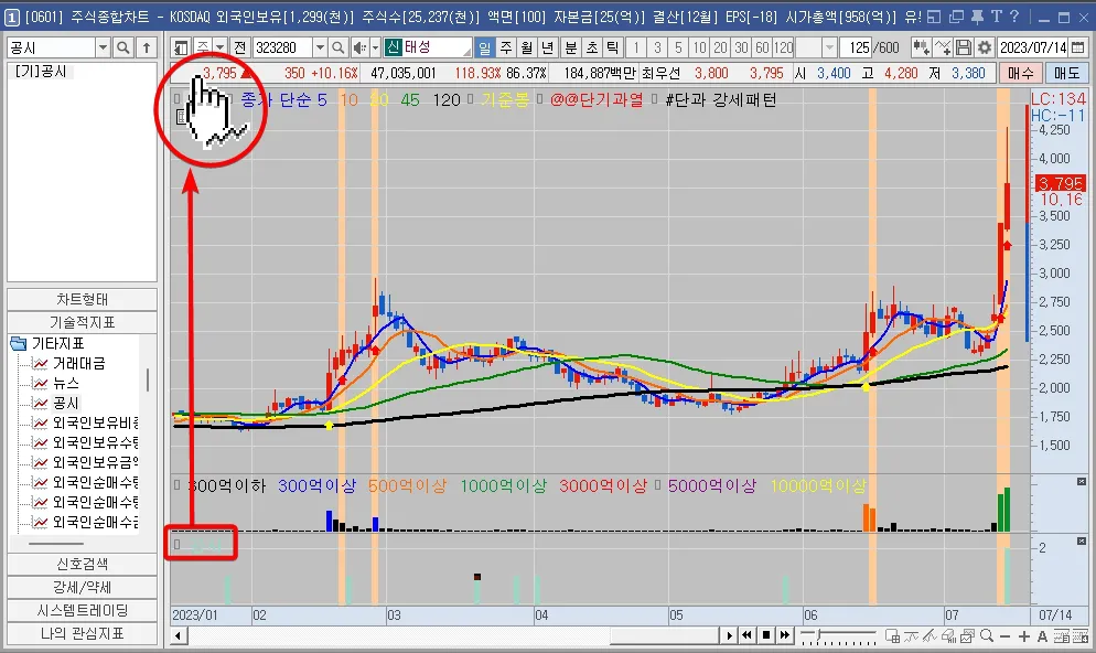 - 일봉차트에 공시를 추가해서 확인하는 방법