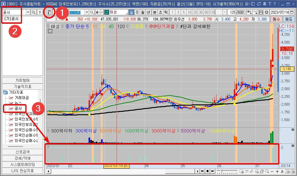 일봉차트에 공시 추가하는 방법
